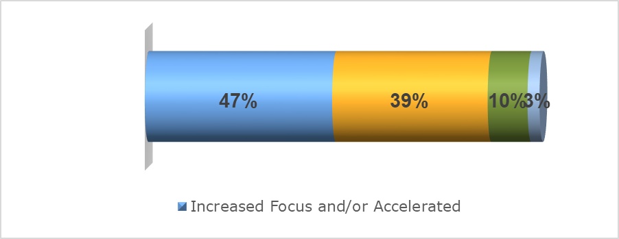 During this meeting, I had the chance to share some of our research findings with members of this ENOVIA Champions community. One of the topics they are interested in is digital transformation with some special focus on the digital twin. I presented some findings from our Business Sustainability and Transformation Strategies 2021 survey showing that manufacturers are “bouncing forward” from recent business disruption by becoming more agile, improving collaboration, adopting new technologies, and furthering digital transformation initiatives. In fact, our research shows that almost one-half of companies are accelerating their focus on digital transformation in response to the disruption from the COVID pandemic.