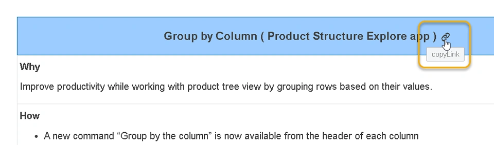A new Copy Link command now appears next to H1 and H2 headers and becomes visible when you hover over them.