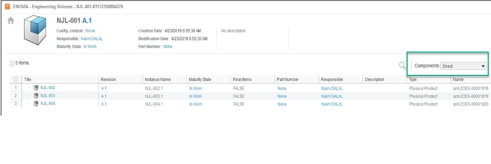 This option displays only the first level of child engineering items (this has been the only view prior to this release).