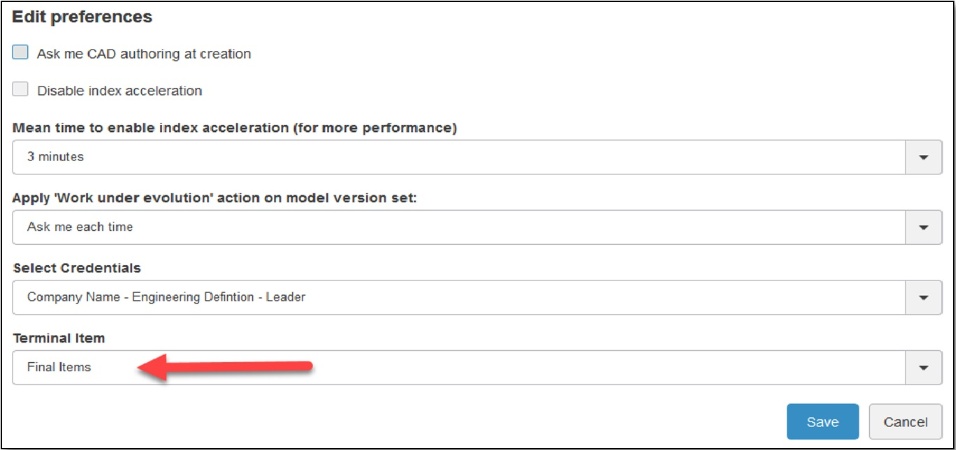 - They have child items, but they have an attribute with value “true” (so they are considered as “Terminal Items”). This attribute is a customized attribute on the engineering item (*) that is defined also in the widget preferences as “Terminal Item”, and it is considered when the “Flattened” view is enabled (as well as in the Export to Excel report).
