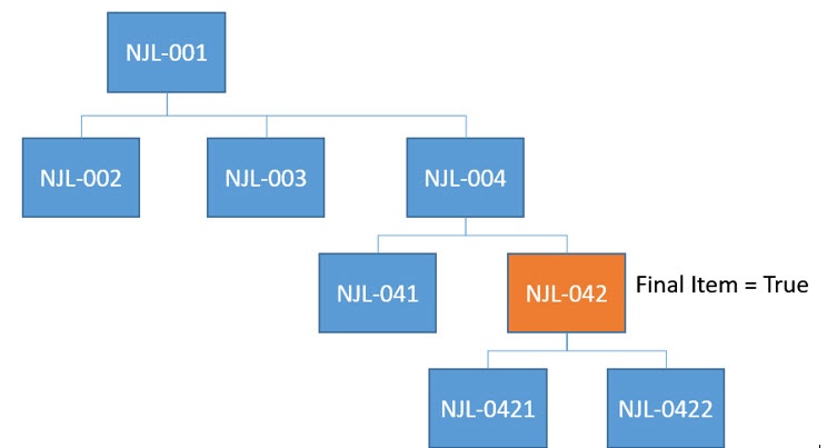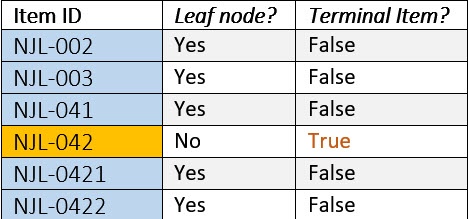 - NJL-042 is also displayed, even though it has its own children, because it has been identified as a Terminal Item