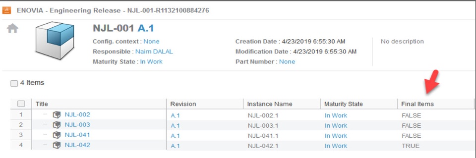 This option displays the list of all engineering items in the complete structure that are considered “Final Items”.