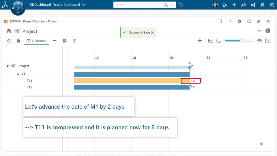 Let’s review some of the visual cues / visual aids in the Project Planning Schedule view: