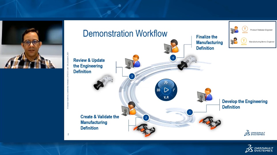 Join Naim Dalal as he shows you how Engineering and Manufacturing functions can collaborate around the product definition with two key roles including ENOVIA's Product Release Engineer and DELMIA's Manufacturing Items Engineer.