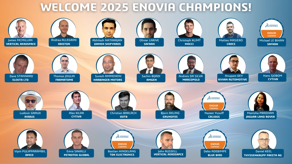 Since the start of 2025, ENOVIA has welcomed 26 ENOVIA Champions into its ENOVIA User Champion Program.