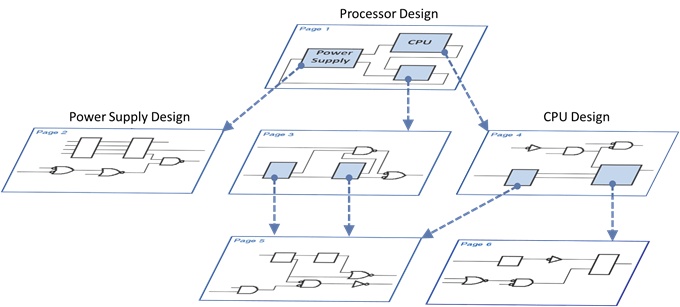 - Hierarchy enables design reuse. The modular designs, such as the power supply, can be externally so that they are accessible to other designers to reuse in new design concepts that requires them.