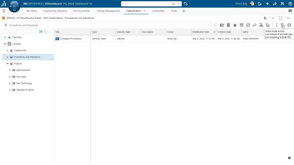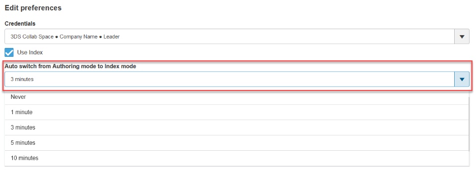 The system automatically enables the authoring mode following an authoring operation. For example, when creating an object. The mode is switched back to index mode automatically after few minutes as defined in the ‘Auto switch from Authoring mode to Index mode’ preference.