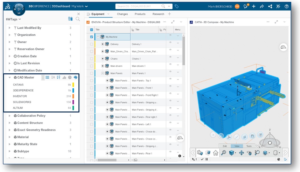In parallel to the needs of the designer, numerous applications that view 3D data (3DPlay, 3D Compare, 3D Navigate, and so forth) use a CGR view format that is also created as a derived output. This has the benefit of allowing all these tools to review, markup, compare and validate these hybrid structures in a common way. Subsequently, democratized data, both 3D and 2D, form the basis of the methodology driving collaboration forward on the 3DEXPERIENCE platform.