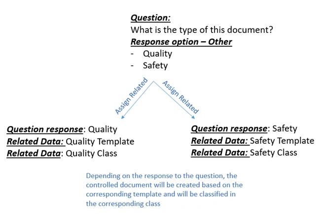 Depending on the response to the question, the controlled document will be created based on the corresponding template and will be classified in the appropriate class.