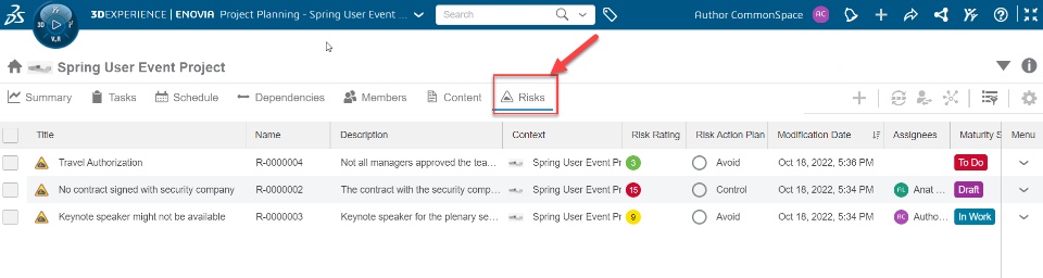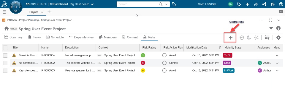 ENOVIA R2021xFD04 release introduced a new 3DDashboard application called ‘Risk Management’, which allows you to capture, track, and manage project risks from identification to resolution.