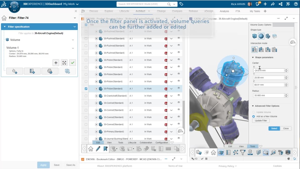 Within a number of apps on the platform is a tool called the volume query. This tool gives you the ability to select a number of components within a structure by use of visual volumes based on a selected component or group of components. In the review below, I will touch on some of the fundamental ways to define adhoc queries with volumes as well has to combine them in persistent filter definitions.