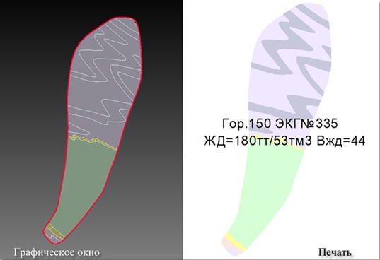 Другой пример: в графическом окне необходимо отобразить только полигон работы экскаватора, а на печать вывести только данные из описательных полей. Для этого настроим соответствующую инструкцию печати.