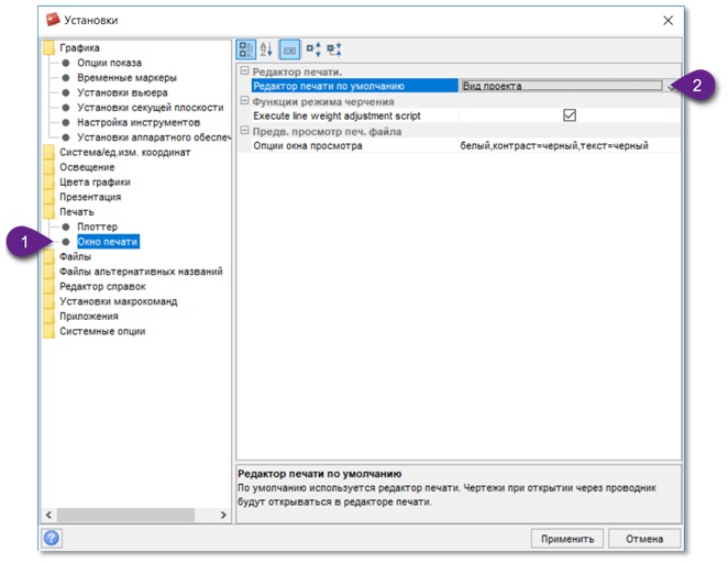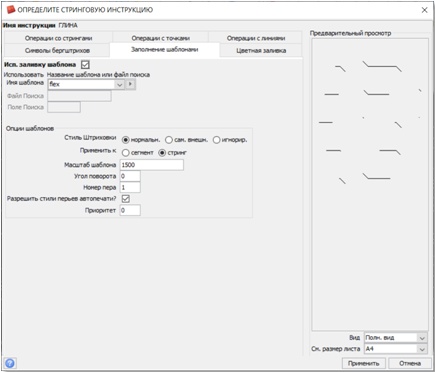 Для всех данных, выводимых на печать, настраиваются тип отрисовки, цвет, приоритетность и другие параметры. В окне установок инструкции есть область предварительного просмотра, что упрощает настройку параметров.