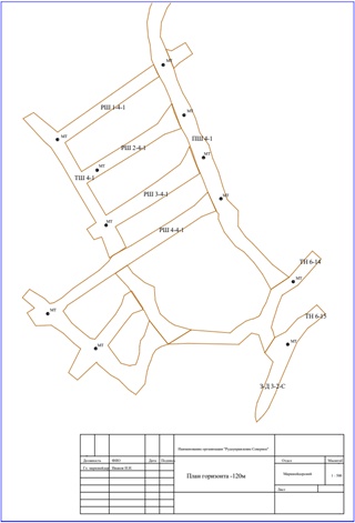 Для печати маркшейдерских планов горизонтов подземных горных выработок необходимо указать область просмотра на определённой высотной отметке. Далее печать происходит аналогично печати любого плана, например, топоповерхности.