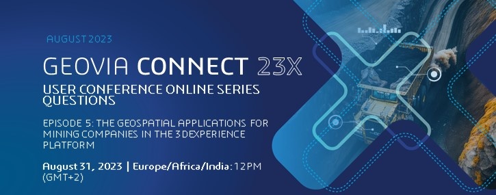CONNECT 23X EPISODE 5: THE GEOSPATIAL APPLICATIONS FOR MINING COMPANIES IN THE 3DEXPERIENCE PLATFORM August 31, 2023 | Europe/Africa/India: 12PM (GMT+2) Questions