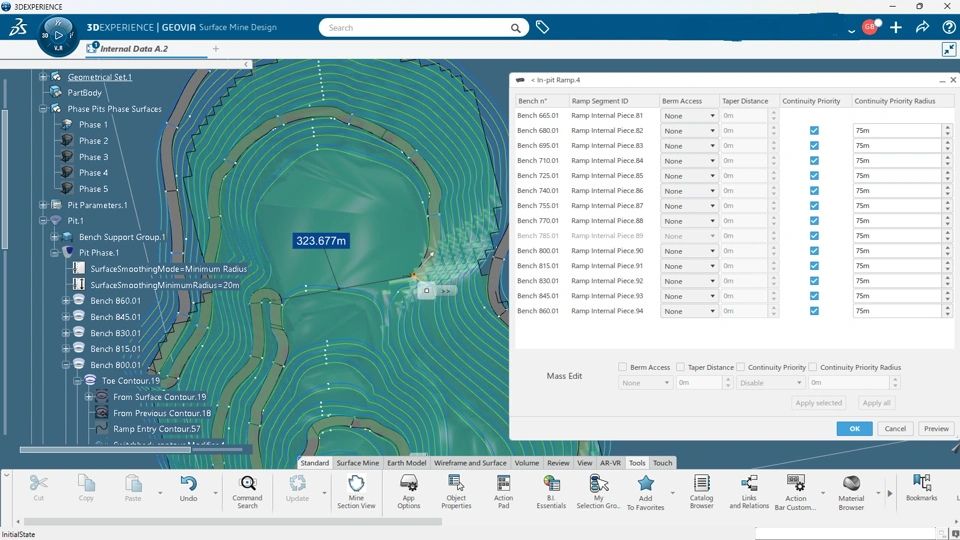 A platform such as 3DEXPERIENCE which supports the retention of knowledge through revisions, issue management and requirement management means mining companies can see a history of how they arrived at a given decision to change the estimation parameters for a resource model or the equipment requirements for pit optimisation, according to Barlow. It means this specific domain knowledge becomes instead part of the company library of knowledge.