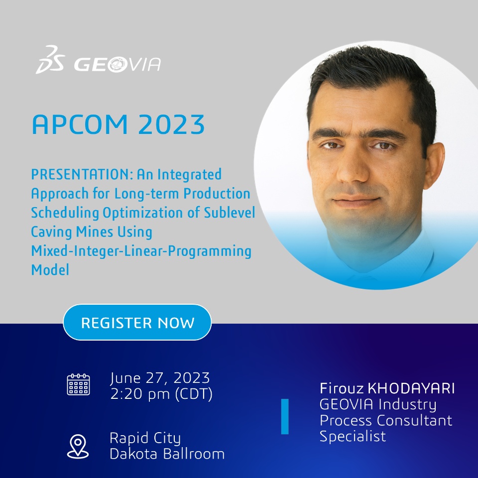 Excited to share that GEOVIA Industry Process Consultant Specialist, Firouz KHODAYARI will be presenting at the APCOM 2023 Conference. If you are attending this event, be sure to attend his informative and insightful presentation. This is another exciting avenue to interact with your favourite GEOVIA expert and discuss all things mining & technology!