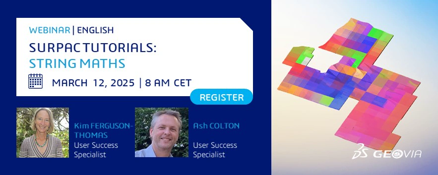 📝 Join us as two of our GEOVIA in-house experts, @KF and @AC, share their best practice on Surpac. In this episode, they will cover String Maths, followed by a 10-minute open-to-the-audience Q&A session.