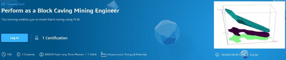 Perform as a Block Caving Mining Engineer is a 10-hour course that trains users in block caving using GEOVIA PCBC, our block-cave planning and scheduling software, used by virtually every mining company involved in block caving, to improve profits through better mine plans, schedules and production management. In this course, you will learn how to use PCBC to build, simulate, evaluate, execute, and calibrate a block-caving project.