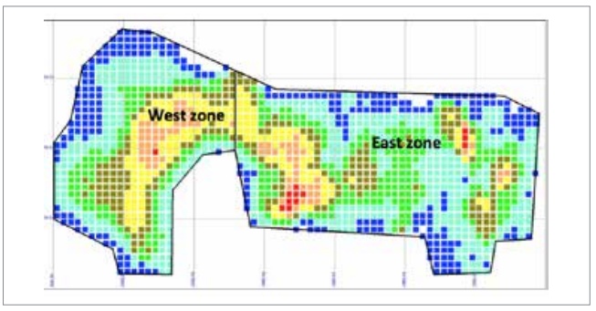 Because of the orebody shape and grade distribution, the footprint was divided into two zones as shown in Figure 12.
