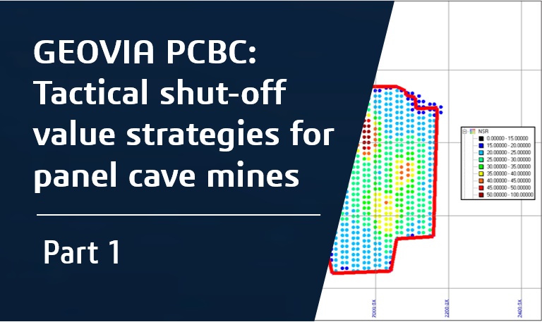 The shut-off value for a panel cave mine determines when a draw point will be shut-off and mining will cease from that draw point. Using a shut-off value strategy for a panel cave mine is similar to using a cut-off value strategy for an open-pit mine.