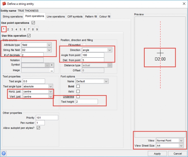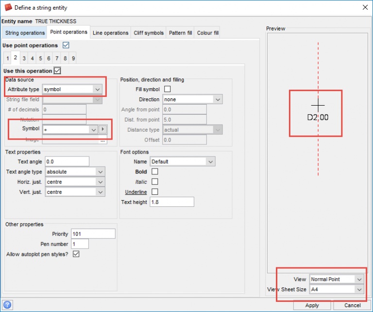 Fill in the forms as follows. This will display the thickness at the bottom of the symbol.