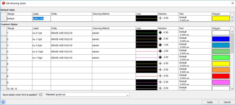 The styles file that is used for the breccia grade will be displayed