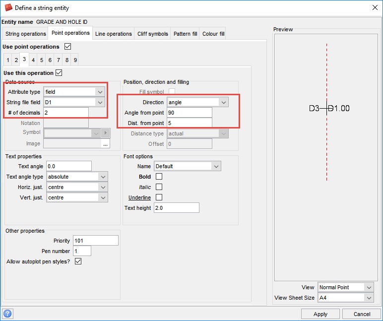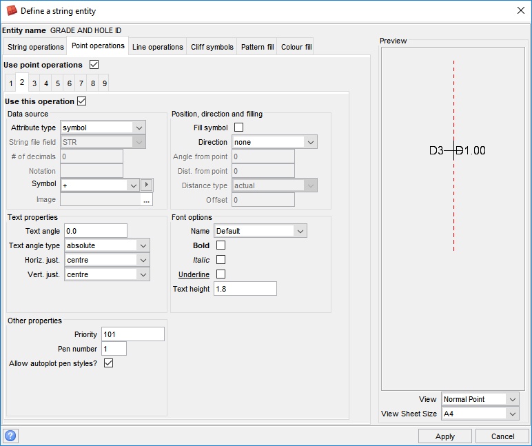 This will display the grade on the left hand side of the symbol and the hole ID on the right hand side.