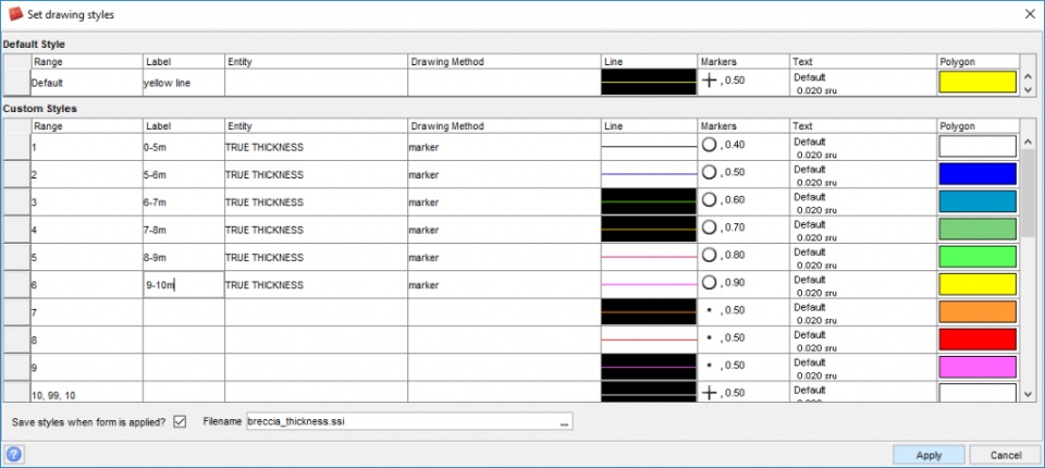 The styles file that is used for the breccia thickness will be displayed