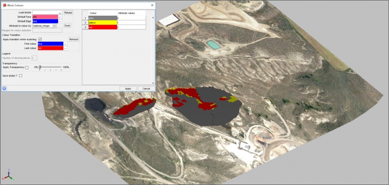 STEP 6: Now we can color the block model to match the material classifications in MineSched.