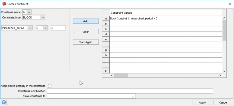 STEP 5: Now to display the block model. The block model attribute we created earlier in MineSched, minesched_period, has a background value of -999, so if we use a block type constraint for minesched_period > 0 this will show all of the block model blocks that will be mined in the schedule.