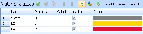 STEP 1: Take note of the material classes that are setup in the block model for MineSched. It is also helpful here to remain consistent with your coloring scheme.