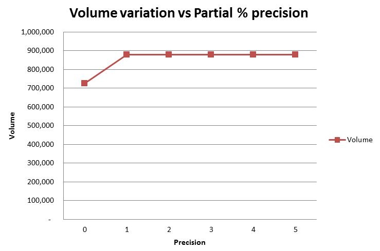 The partial percentage creates additional ‘centroids’ by sub dividing the bigger block model block into smaller blocks using varying Precision (values 1 to 5 depending on level of accuracy needed and computer specs)