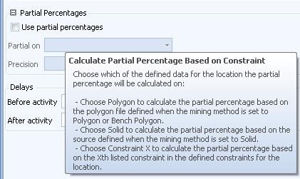 It is important for mine planners to report numbers that are as accurate as possible when generating mining schedules. GEOVIA MineSched, as a planning software of choice, provides the user with an option to increase the level of accuracy in the volumes and tonnages through the partial percentages option when reporting quantities in either solids or polygons.