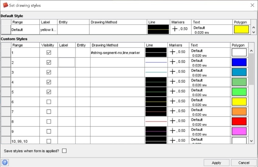 Surpac 2022 allows users to control the visibility of strings and objects through the use of styles and then store this display status in the SDM file. This allows a more intuitive and improved user experience.