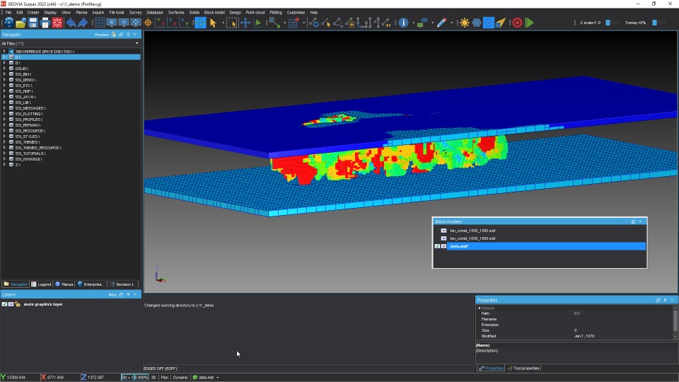 Improved data validation through the ability to display and visually inspect multiple block models at the same time. Users can load multiple block models in the Graphics Window and control the visibility of the loaded block models while retaining all of the block model operations in an active model when switching to another model.