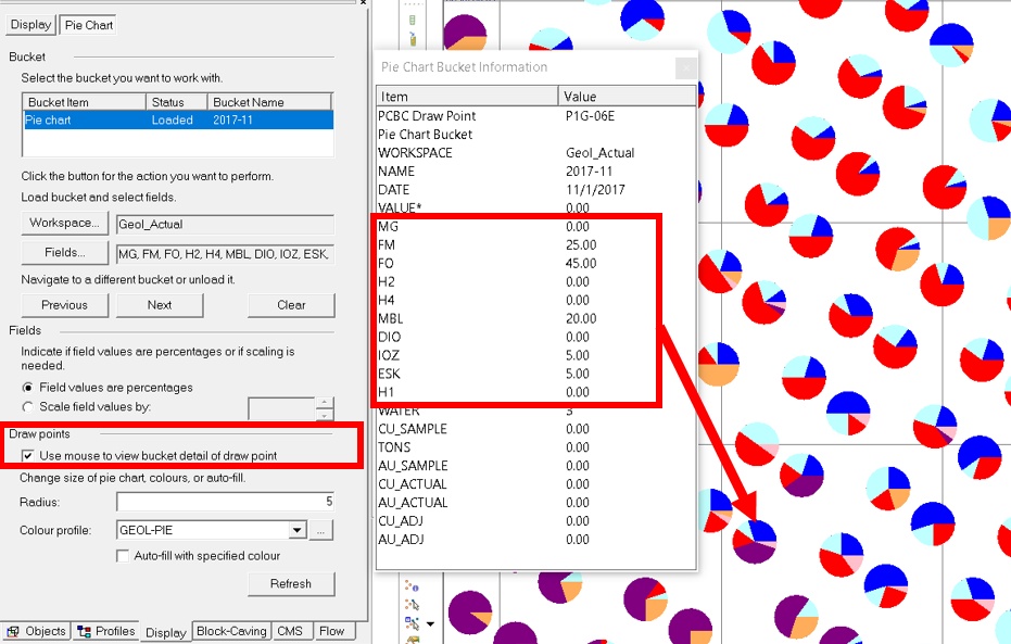 To see field information of the draw points, select the tick box “Use mouse to view bucket detail of draw point.”