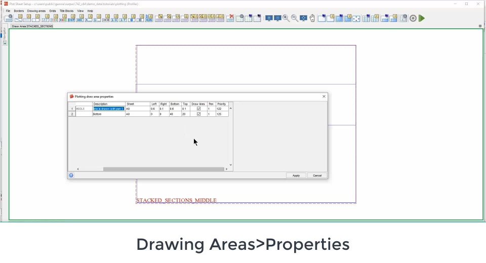 This tip is for a mining professional that wants to create customised sheet layouts for plotting x-sections or mining plans, for example stacked sections.