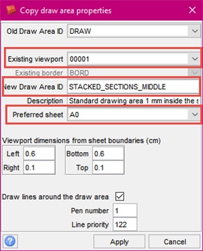 3. Select an existing boarder, enter in the new drawing area name, and the description