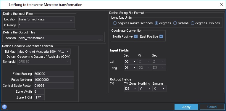 - Output fields should be Y for northing and X for easting. The TM zone can go into any empty dfield.