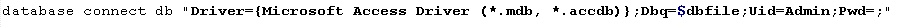 STEP 4. To make the database connection, use the command database connect to create a variable for the database handle, here I am using db, and specify the database connection string by passing the name of the Microsoft Access database file into the connection string.