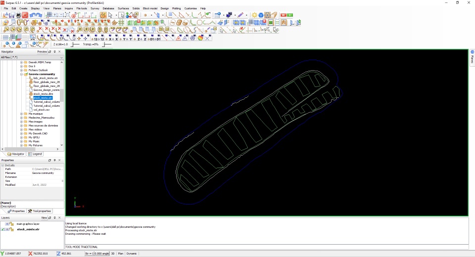 Before to process for volume calculation, it is important to determine a boundary (contour) of the stock whose want to calculate the volume.