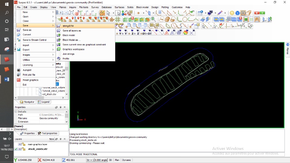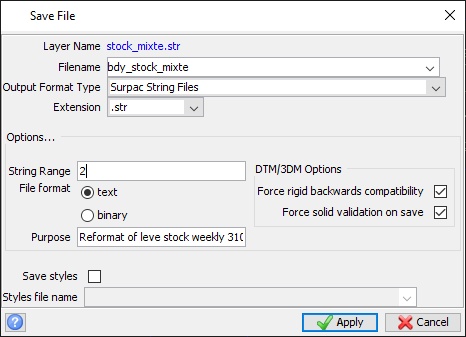 File →Save → string/DTM