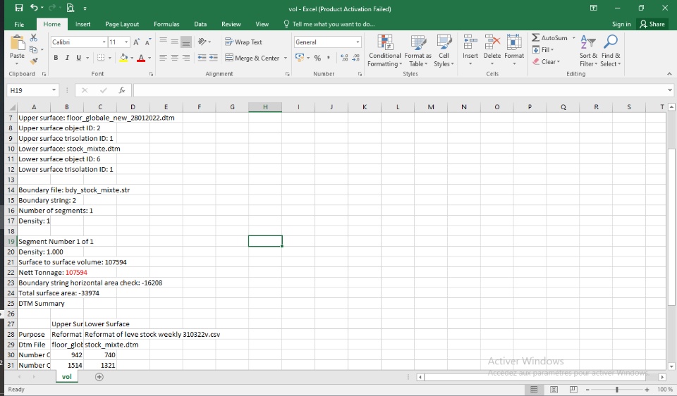 Finally, the volume in Csv file where the volume is 107 594 Bcm