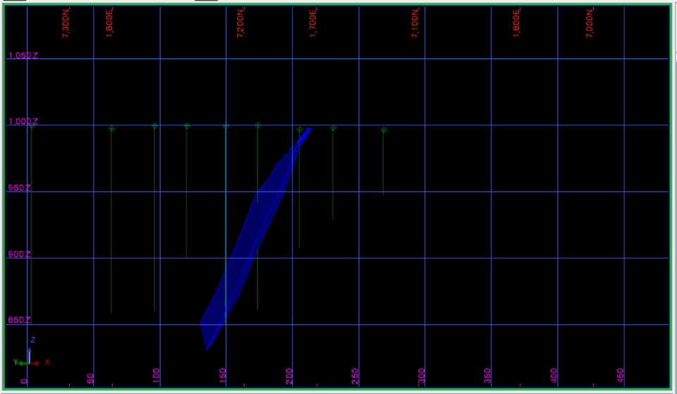 Sometimes, an inclined plane may be required to create a long section to see the density of drilling within the dipping ore zone. This function sits under the “Planes Menu.”