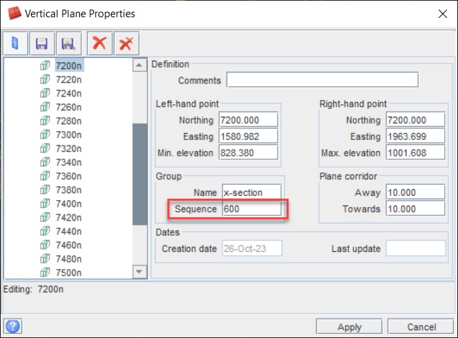 Sometimes, in-between sections may need to be created after the main plane group has been created. These new sections will be out of sequence. To place the sections in the correct sequence