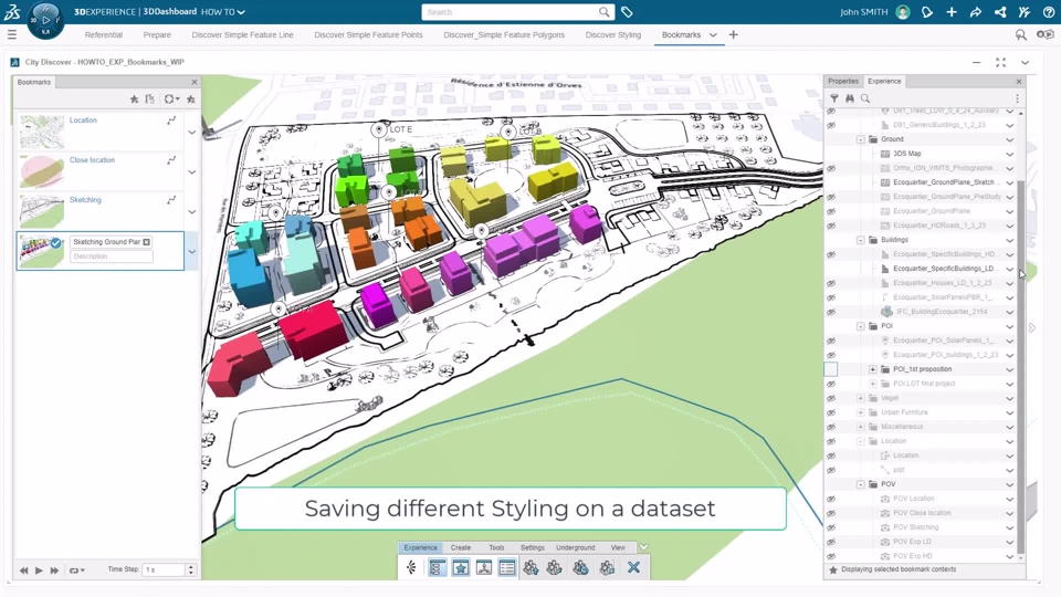 Here is a video illustrating the creation of bookmarks with the appropriate data and points of view on an urban development project.
