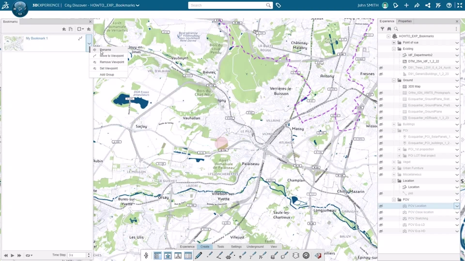 When the Experience has been saved by City Discover, it will be viewable by others people with right roles and will allow to replay the automatic playback functionality of the different steps configured in the bookmark panel.