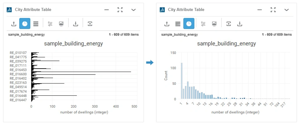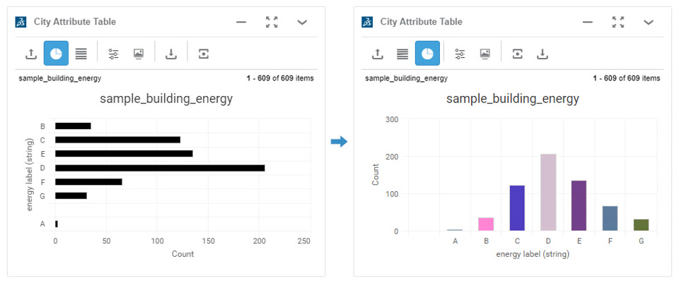 We have enhanced the charting part of the attribute table widget. We introduced colors, support more attribute type and sort them properly in order to provide much more comprehensive analytics. Here are some comparisons :