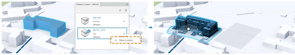 Following the R2024x FD02 release of the Related Content for building, you can now directly open a content which is geolocated from the contextual menu.